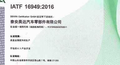 泰安昊達(dá)汽車零部件有限公司位于新泰市經(jīng)濟(jì)開發(fā)區(qū)嶅山路7號,公司成立于2011年,是一家生產(chǎn)中、重型卡車底盤鑄鍛件、焊接件、發(fā)動機配件的專業(yè)廠家,廠區(qū)占地面積101畝,2018年建設(shè)年產(chǎn)300萬件汽車零部件項目,項目總投資3.16億元,總建筑面積3.6萬平方米,是新泰市汽車裝配產(chǎn)業(yè)鏈的重點項目、2018年、2019年泰安重點項目,現(xiàn)已建設(shè)完畢,于2019年1月1日正式投入使用,設(shè)備新上覆膜砂自動化鑄造生產(chǎn)線1條、熱模鍛生產(chǎn)線6條、自動化焊接生產(chǎn)線10條、CNC加工設(shè)備200余臺套。 主要產(chǎn)品:中、重卡車底盤配件、轉(zhuǎn)向配件、中后橋氣室支架總成、中后橋配件、前橋轉(zhuǎn)向節(jié)臂、焊接配件、發(fā)動機配件。產(chǎn)品主要銷往中國重汽集團(tuán)、市場份額約50%,位居行業(yè)鑄件產(chǎn)品前三。 公司擁有IATF16949:2016國際標(biāo)準(zhǔn)質(zhì)量管理體系認(rèn)證,擁有實 ......